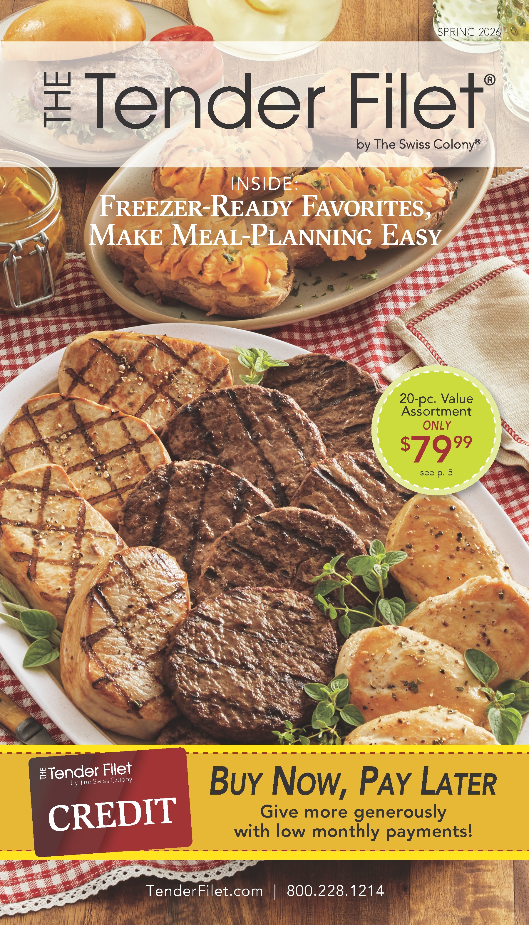 In addition to our premium aged beef, your catalog shopping experience also includes restaurant-quality entrées like seafood, chicken specialties and Pork Porterhouse, as well as appetizers, side dishes, and desserts that are easy to prepare for an extraordinary home dining experience or to share as gifts. And The Tender Filet is one of the only buy-now, pay-later food catalogs in America...and the only one where you can buy fine foods like these.